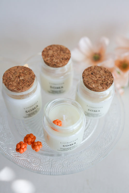 Taittelen huolella valmistetun hentoon silkkipaperiin ja solmin pienen rusetin valmiin merkiksi. Tässä hetkessä on muutakin kuin kynttilä ja paketti; läsnä on myös lohtu ja ilo, taakse jäänyt ja edessä oleva. Kynttilöissämme on käärittynä kaipuu ja paketoituna toivo - läsnäolon lempeä loimu. Sytytä käsintehty kynttilä ja anna liekin lumota.