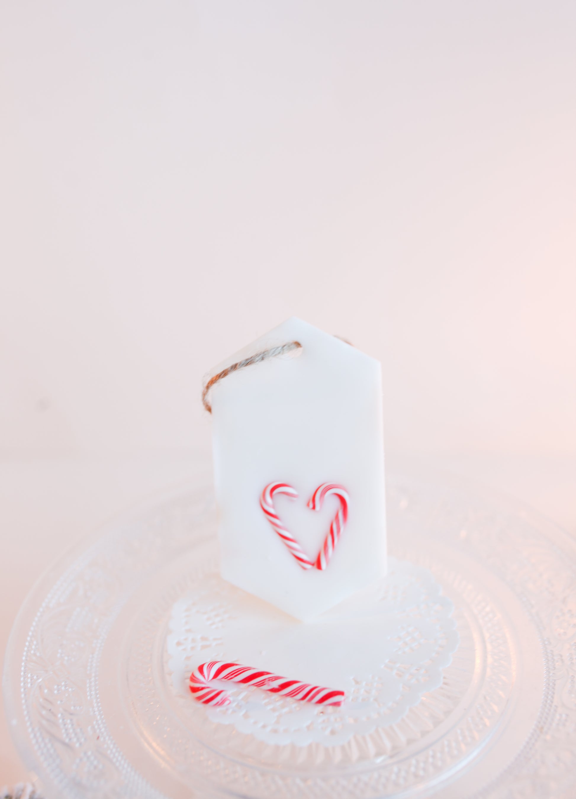 Hang the Polka Candy scented scented tile on the bathroom towel hook, in the closet or in the hallway and let the scent take over! Polka smells like vanilla peppermint candy. The scent is soft, delicious and minty cool. Decorated with a red and white striped candy bar.