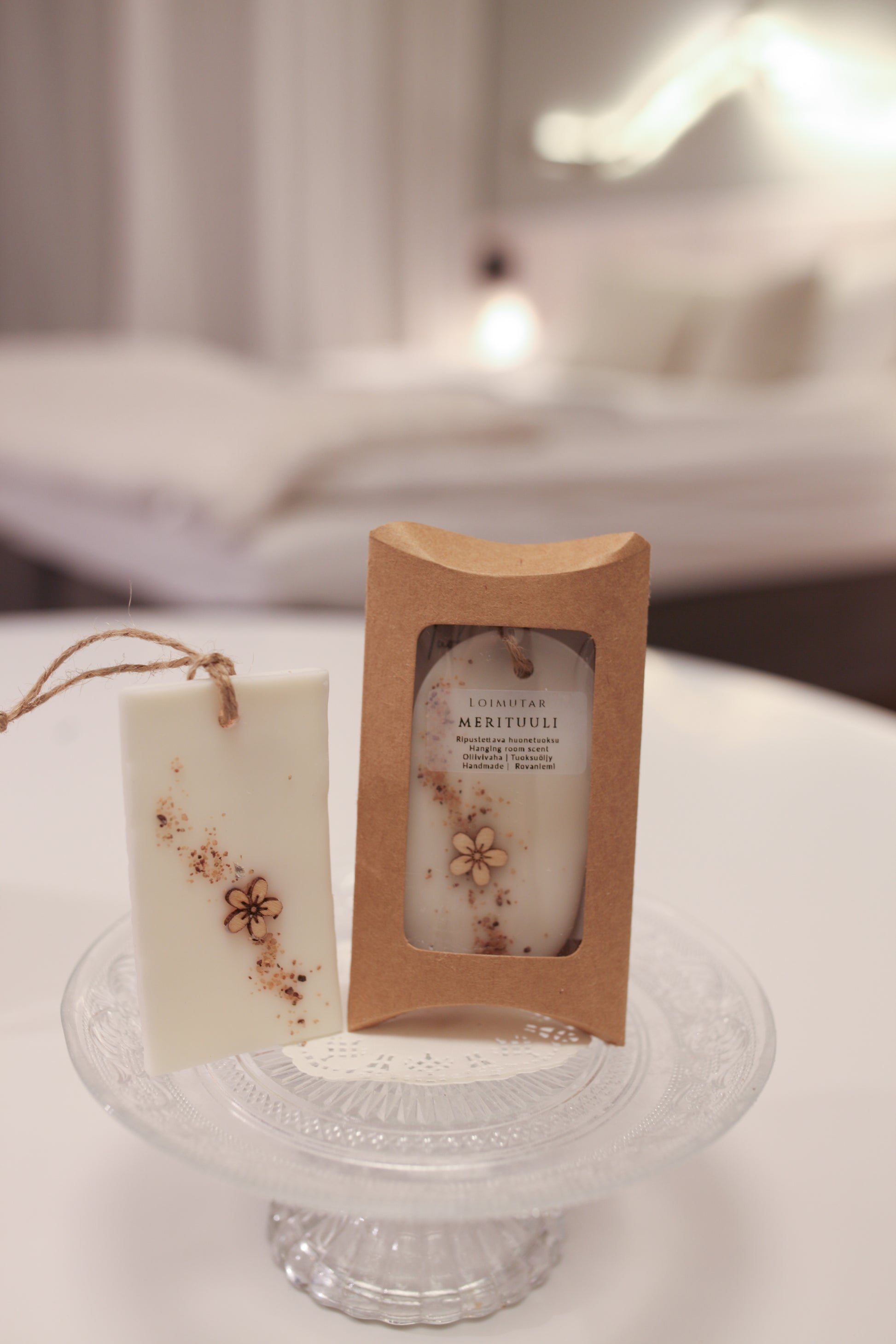 Tuoksulaatan muoto voi vaihdella (ovaali, särmikäs tai suorakaide). Pakattu kartonkipakkaukseen, sisältää käyttöohjeet. Koko 9×5cm. Toimitusaika 2-3 arkipäivää