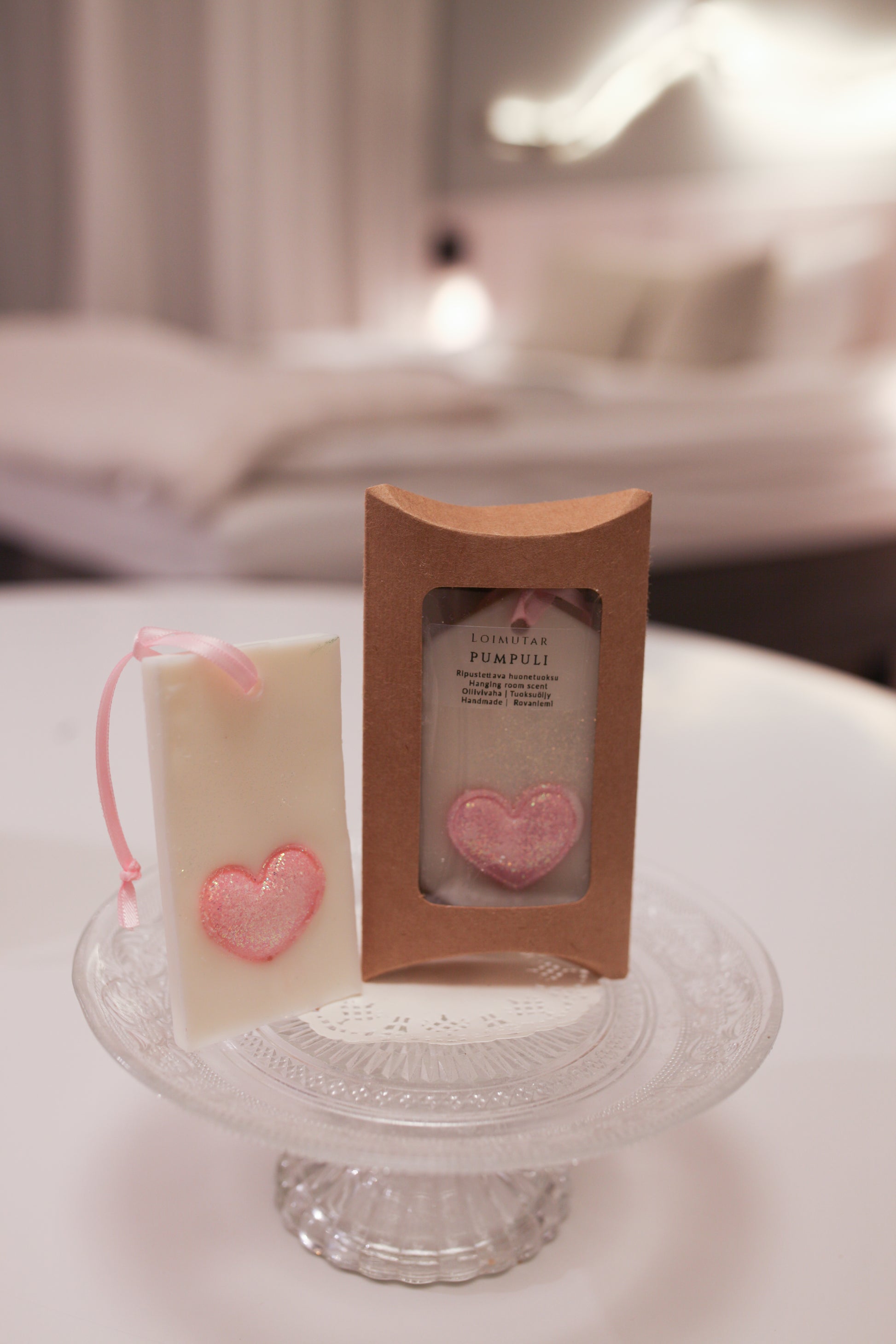 Ripusta pumpulin tuoksuinen tuoksulaatta roikkumaan vessan pyyhekoukkuun, vaatekaappiin tai eteiseen ja anna tuoksun herätellä sinut lempeään päivään. Tuoksulaatassa on koristeena glitterillä koristeltu vaaleanpunainen sydän.