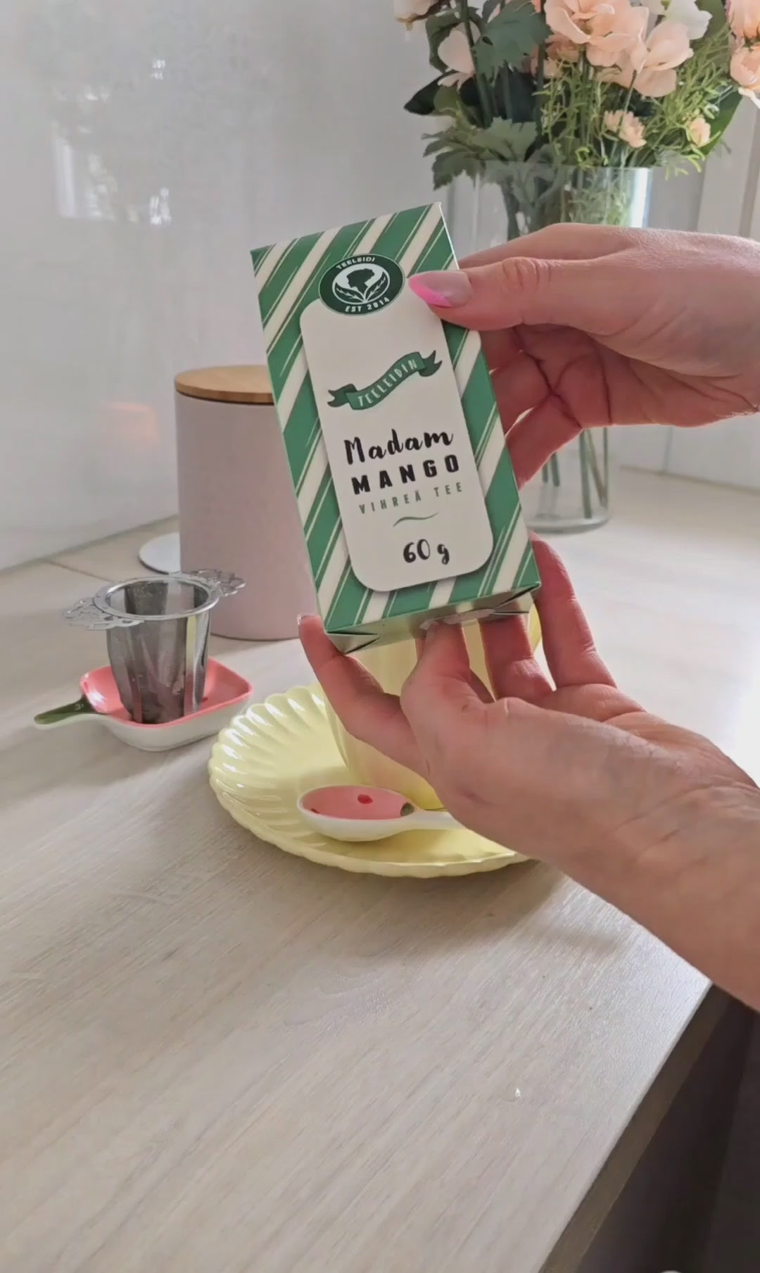 Ihana mangoinen vihreä tee piristää makealla aromillaan.