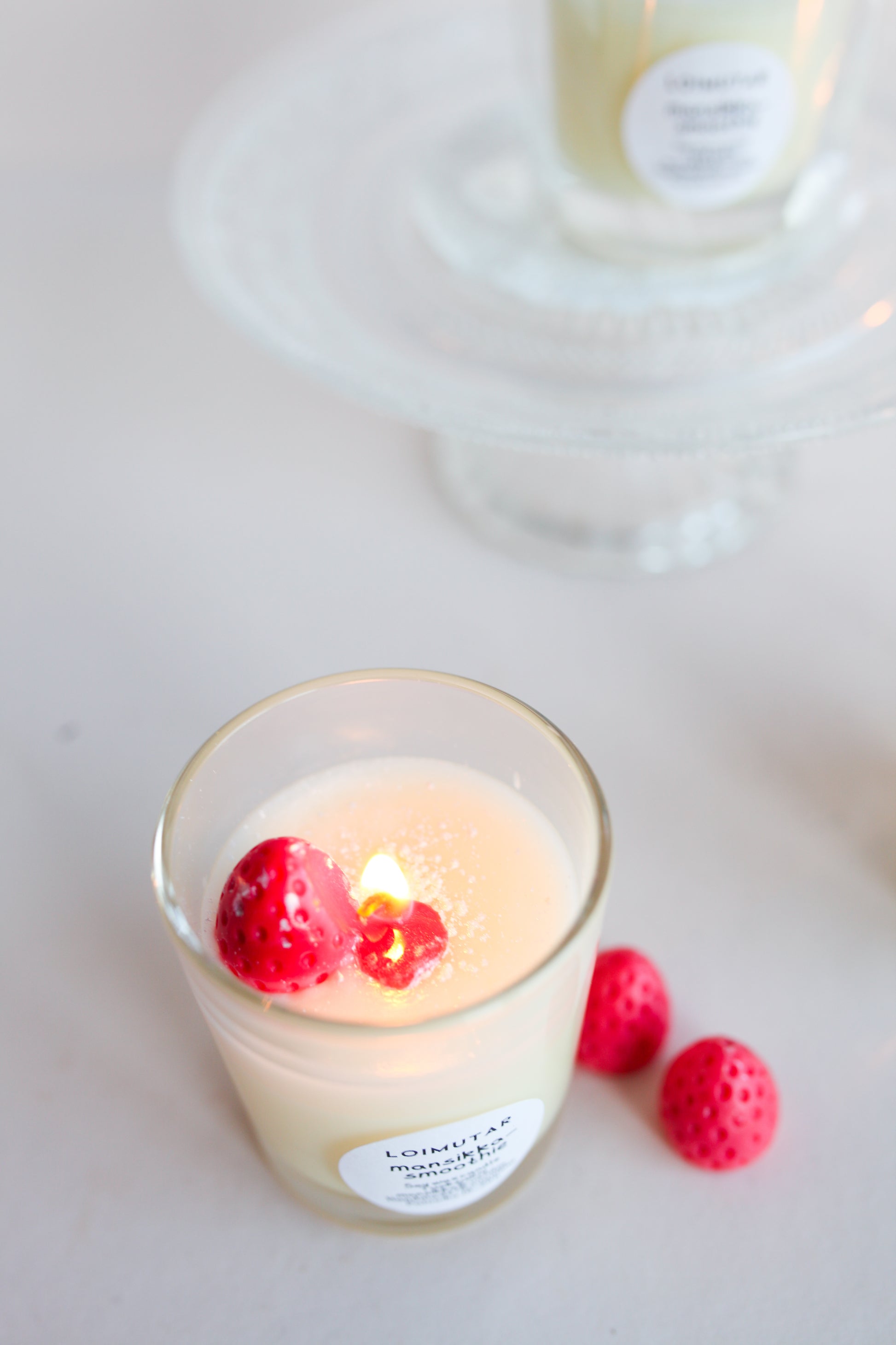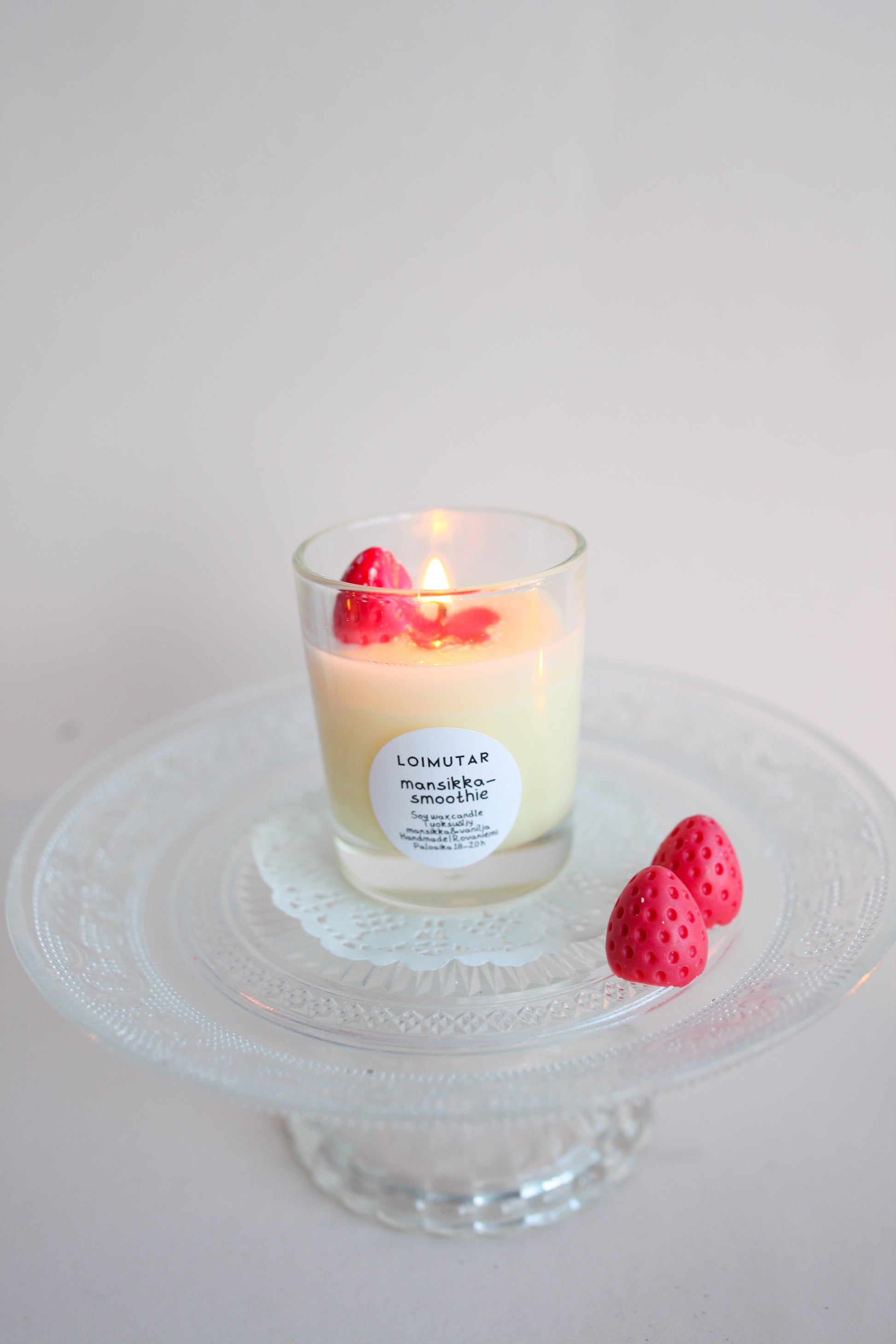 Piristä päivääsi mansikkajäätelön tuoksulla♡ Tämä kesäinen herkkukynttilä muistuttaa hotelliaamiaisella shottilasissa tarjoiltavia herkullisia mansikkasmootheja.