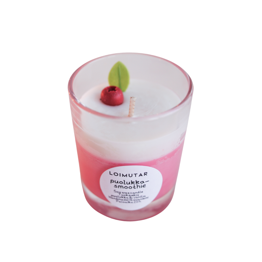 Aloita päiväsi piristävällä puolukan ja vaniljan tuoksulla! Tämä suloinen herkkukynttilä muistuttaa hotelliaamiaisella shottilasissa tarjoiltavia smootheja.