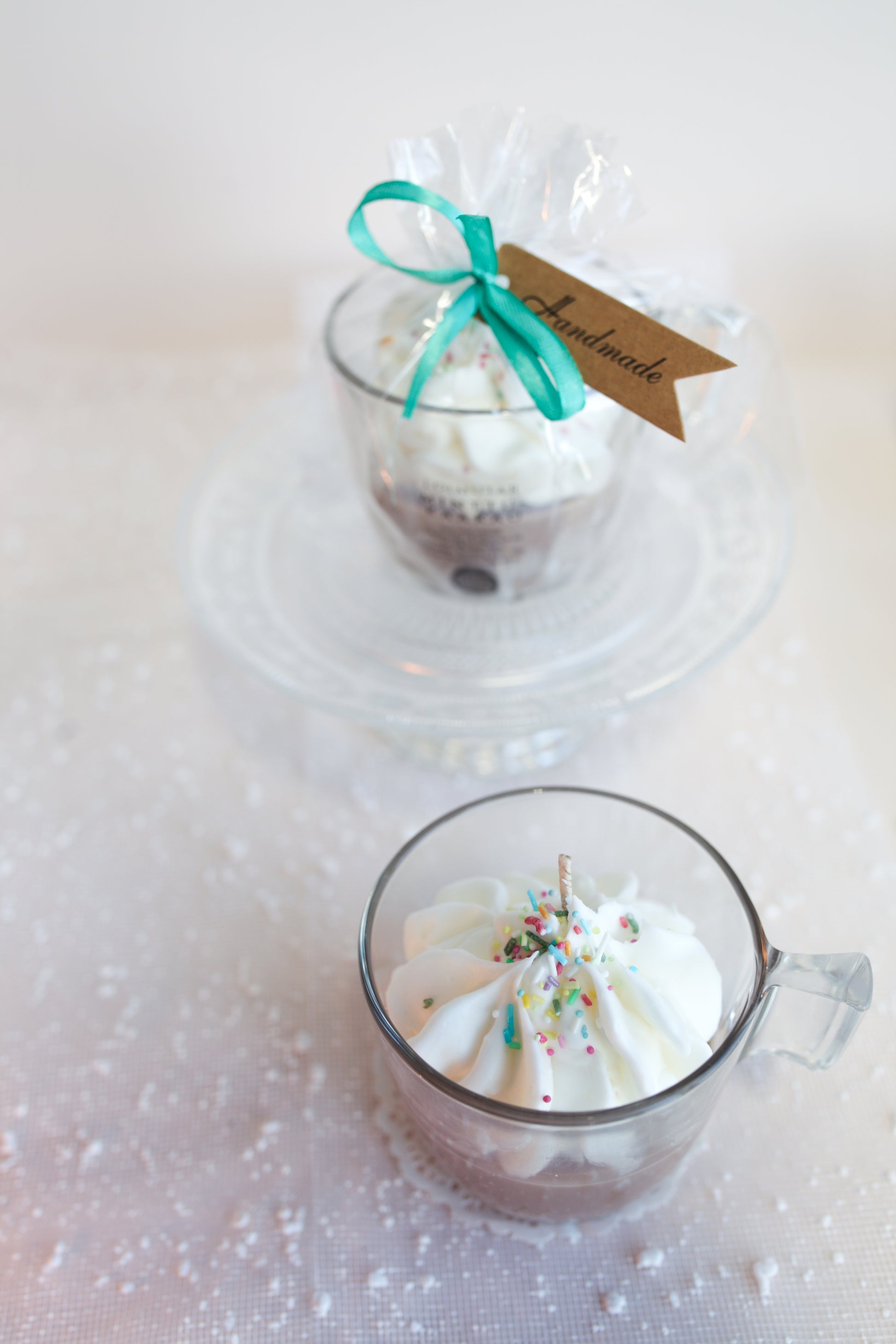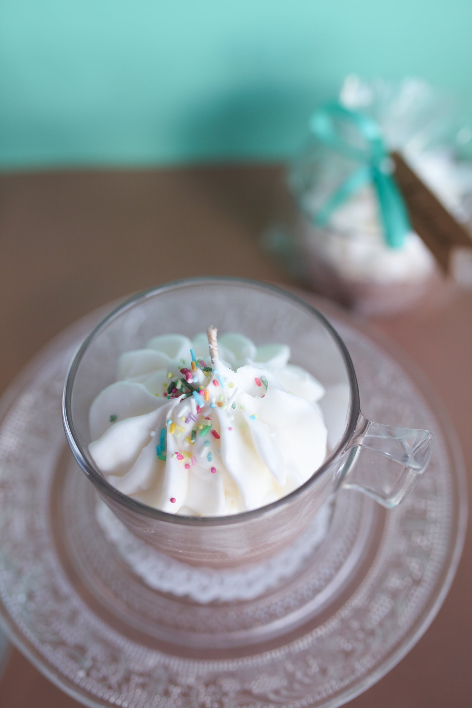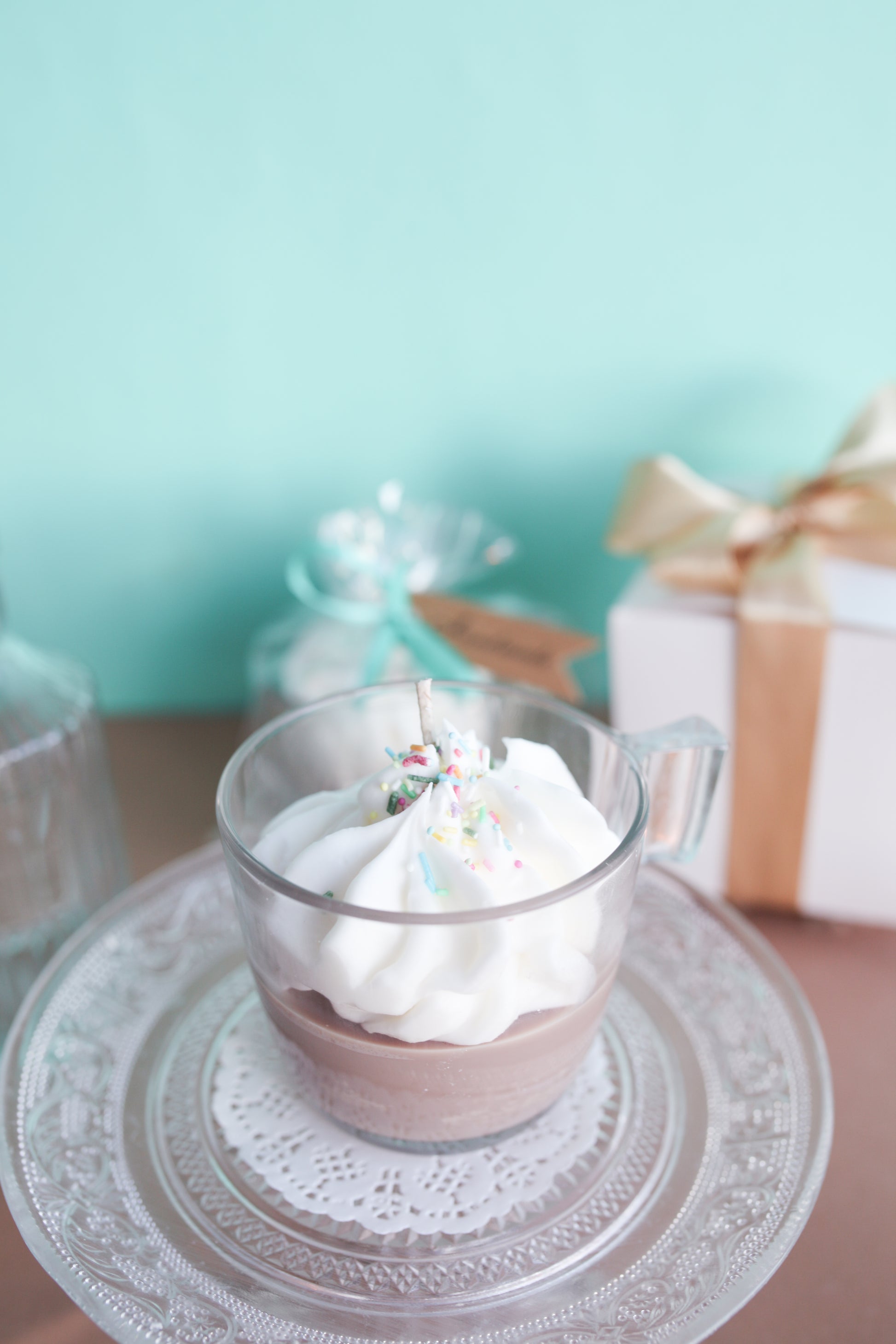 Nauti virkistävän ulkoilupäivän päätteeksi kynttilän lämmöstä! Tämä aidonnäköinen herkkukynttilä tuo mieleen lämmittävän kupillisen höyryävää minttukaakaota, jonka pinnalla on kermavaahtoa.